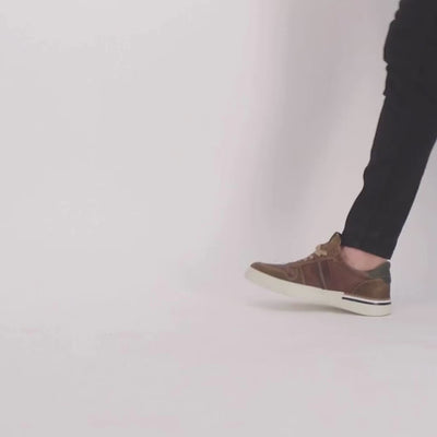 נעלי סניקרס לגברים בעיצוב אלגנטי-ספורטיבי, עשויות שילוב של עור איכותי וזמש ליצירת מראה ייחודי ועמיד. מצוידות ברפידה נשלפת מחומר שעם קל עם ציפוי שפאלט, המעניקה נוחות ואוורור טבעי לאורך כל היום. סניקרס מושלמות לשילוב עם לוק יומיומי או חצי-אלגנטי.