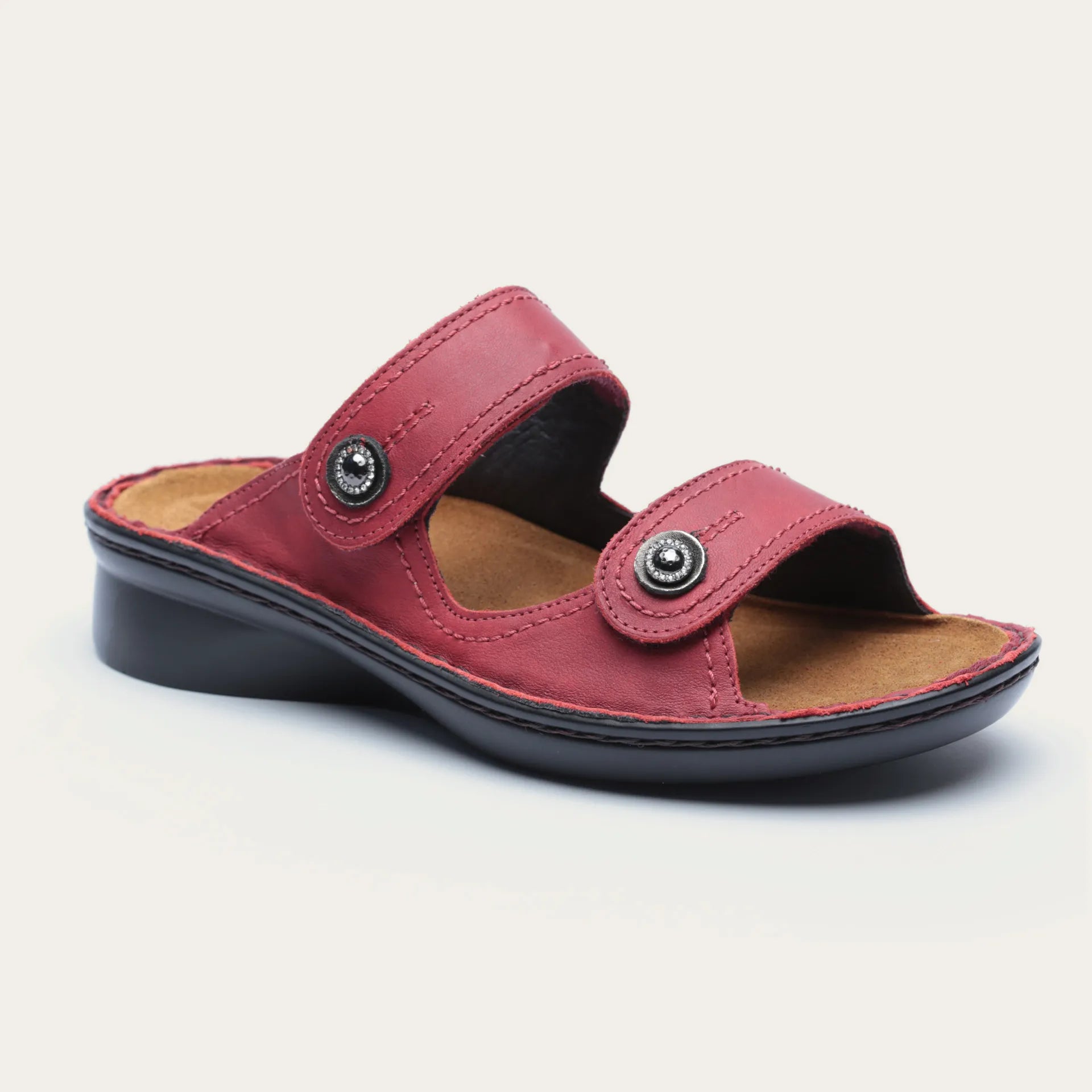 כפכפים נוחים עשויים מעור איטלקי איכותי עם 2 רצועות סקוטצ', סוליית פוליאוריטן ועקב קטן ומרובע 3. 80 ס"מ. הדגם נוח במיוחד וכולל רפידת נוחות אנטומית נשלפת עם ציפוי מיקרופייבר. מיוצר בישראל בעבודת יד.